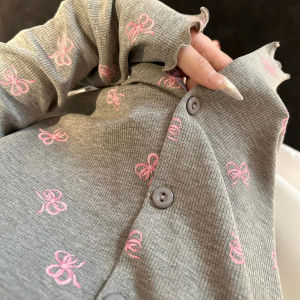 韩版甜美蝴蝶结印花莫代尔睡衣女2025新款大码舒适长袖家居服套装
