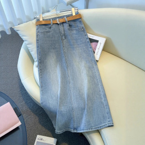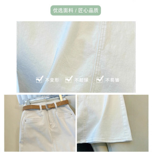 白色牛仔半身裙女秋季2025新款高腰a字直筒裙显瘦后开叉包臀裙子
