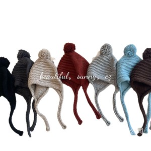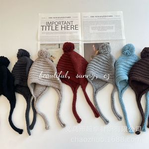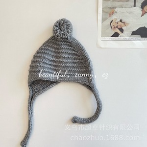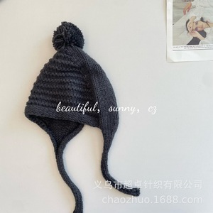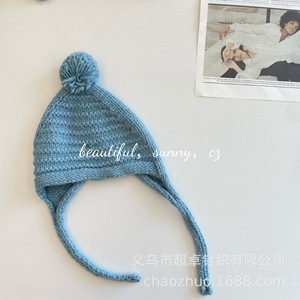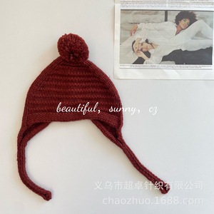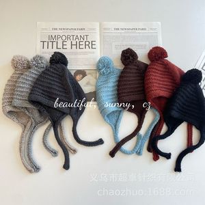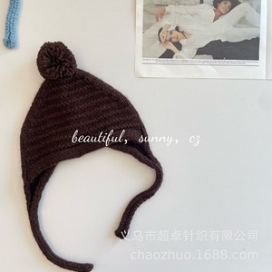 杂志时尚设计师同款儿童毛线帽冬季护耳球球针织帽