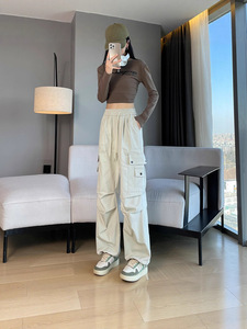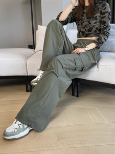 【2516】酷飒风伞兵工装裤女秋季新款宽松美式直筒登山冲锋运动裤