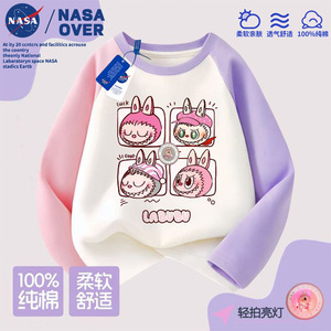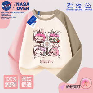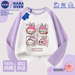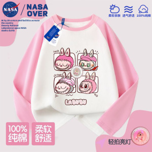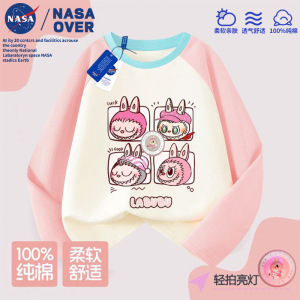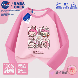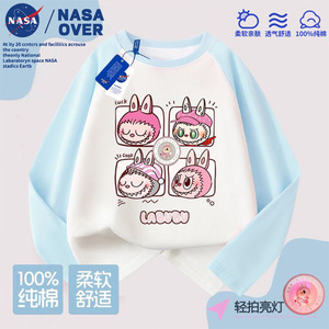 NASA儿童拉布布亮灯纯棉插肩长袖t恤秋季新款中大童潮流可爱上衣