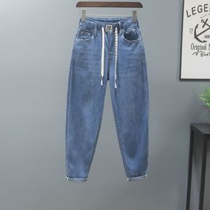 松紧腰牛仔裤女2025年秋季新款高腰哈伦裤弹力直筒显瘦九分萝卜裤