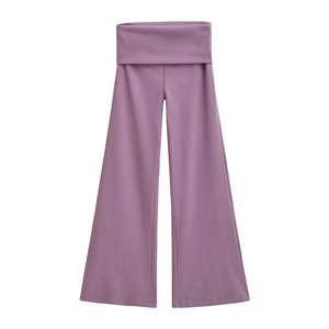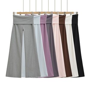 美式辣妹散步遛弯裤秋季新款可翻折腰头针织宽松裙裤阔腿微喇裤女