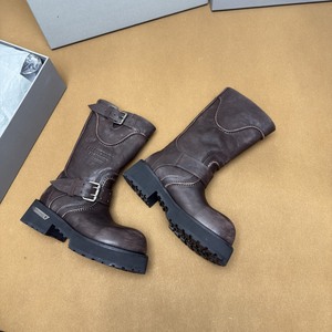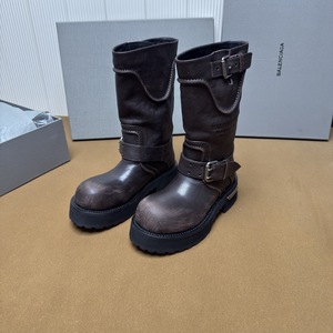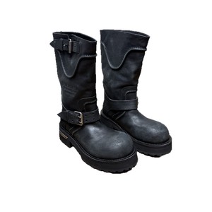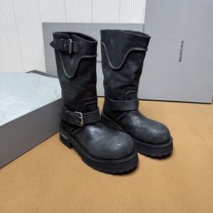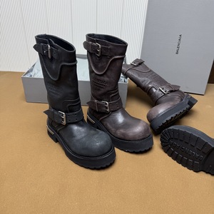 暗黑系巴黎大头复古西部毒液靴牛仔靴皮带扣粗跟机车靴做旧高筒靴