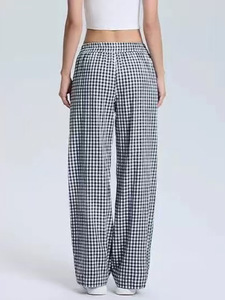 2025欧美跨境外贸亚马逊女式经典百搭格子阔腿休闲长裤