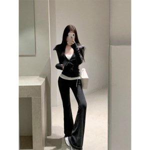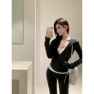 YIKD 2025新款春秋穿搭休闲运动套装女修身收腰连帽卫衣微喇裤子