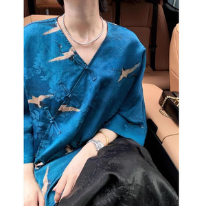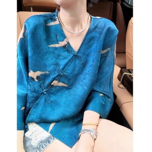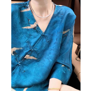 国风女装2025新款轻奢高级感超好看du特漂亮新中式蓝色印花衬衫夏