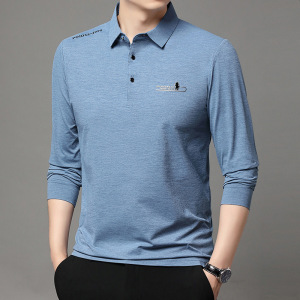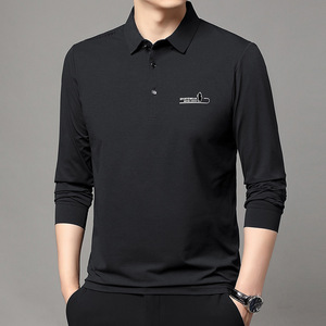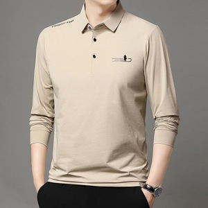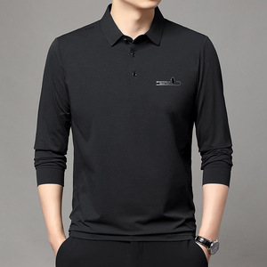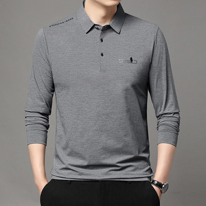 春秋长袖翻领Polo衫中年男士宽松简约休闲透气舒适t恤打底衫批发