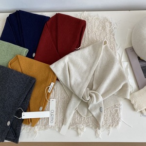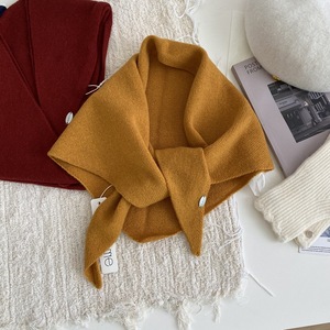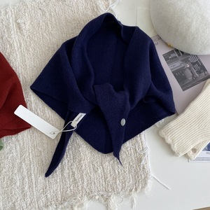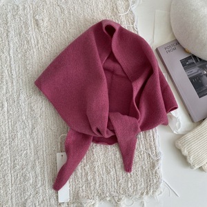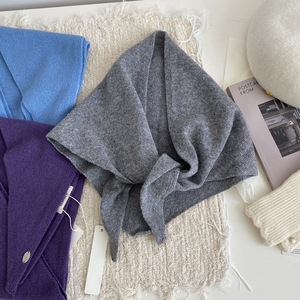 韩国氛围感100%羊毛三角巾女纯色护颈围脖秋冬保暖百搭柔软小围巾