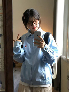 春秋浅蓝色外套女爆款新款日系小个子百搭棒球服宽松休闲翻领夹克