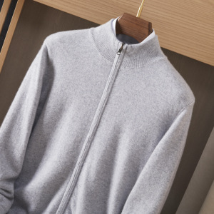 秋冬加厚双面纯羊绒开衫男士半高领毛衣空气层外套休闲上衣针织衫