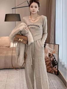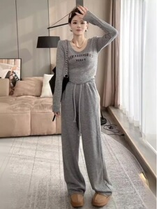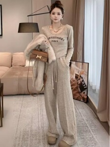 韩版大码宽松300斤胖mm套装秋冬百搭遮肉保暖高腰阔腿裤两件套潮