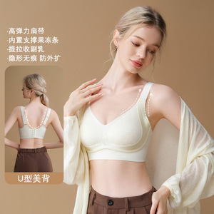 新款粉底液无痕提拉聚拢蕾丝内衣女大胸显小裸感舒适固定文胸罩