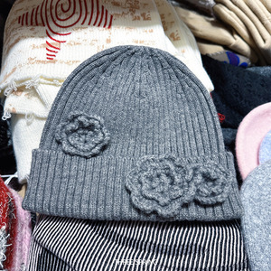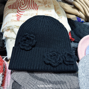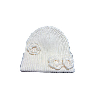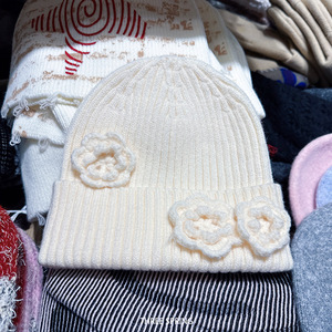 批发韩国2025年秋冬新款立体花朵毛线帽女保暖护耳显脸小针织帽子