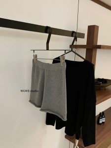 WGWE早秋新款简约风复古针织直筒裤修身百搭显瘦休闲短裤女W7190