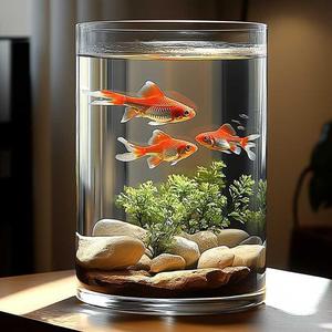 家用亚克力鱼缸透明仿玻璃金鱼缸圆形圆柱形客厅桌面小型防摔塑料