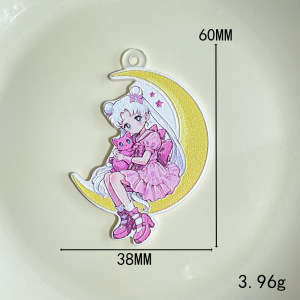 钥匙扣挂件卡通印花月亮吊坠diy手机链钥匙扣挂件车挂包挂材料