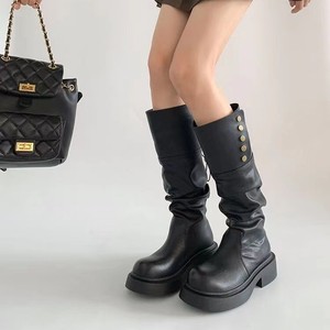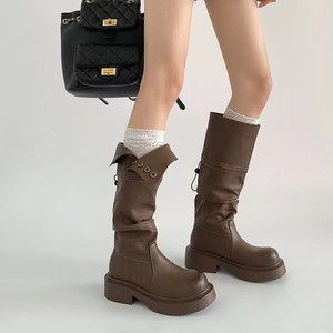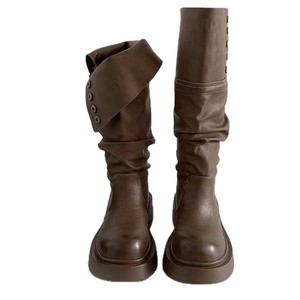 棕色长筒靴女2025秋冬新款厚底不过膝高筒骑士靴美拉德显瘦长靴子
