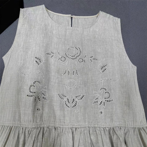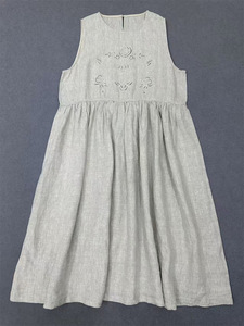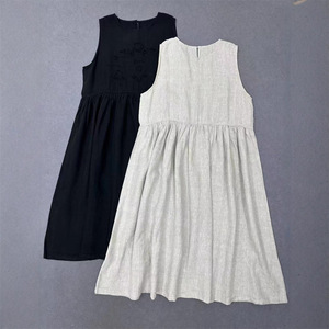 2025新款重工刺绣亚麻背心裙叠穿百搭气质显瘦连衣裙女