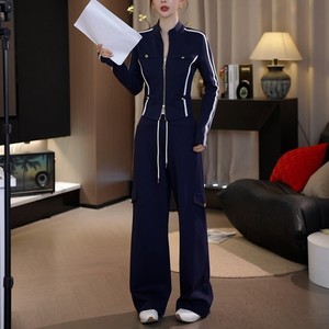 春秋新款时尚百搭洋气运动条纹休闲套装显瘦高腰修身上衣卫裤套装
