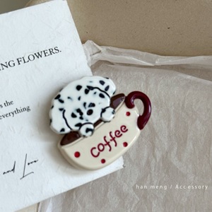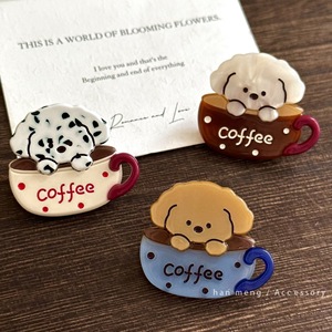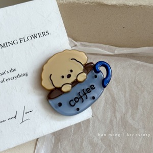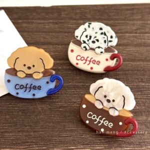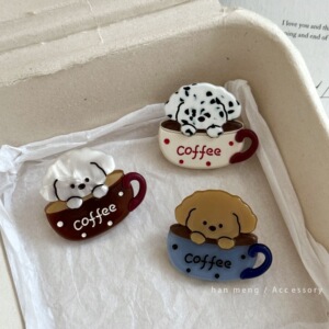 小狗coffee~醋酸卡通小狗咖啡杯边夹刘海夹少女可爱卡通百搭发饰