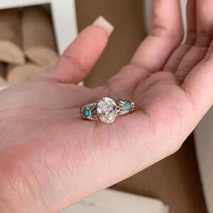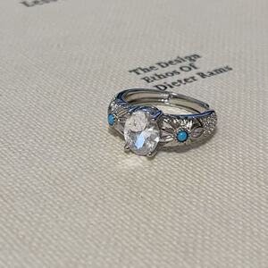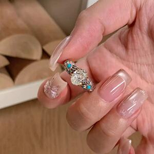 新中式小雏菊鸽子蛋戒指女复古精致高级感绿松石指环小众食指戒
