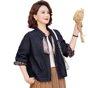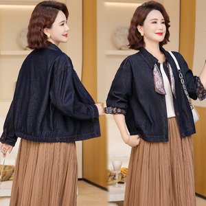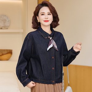 一件代发2025秋季新款时尚洋气复古百搭宽松显瘦丝巾设计牛仔外套