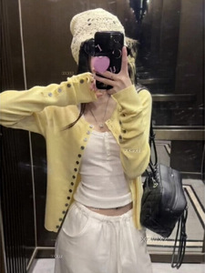 加州落日限定 贝壳扣麻灰针织开衫修身显瘦防晒长袖上衣