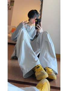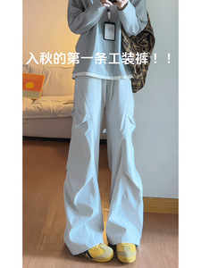 少年感褶皱口袋工装裤秋季oversize宽松阔腿裤户外徒步运动休闲裤