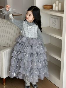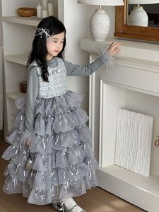 女童秋款小香风珠片网纱裙2025新款洋气流苏公主裙女孩生日礼服裙