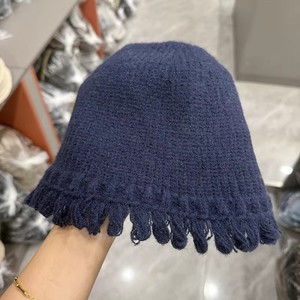 针织毛线花边渔夫帽-藏青色