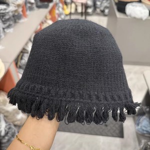 针织毛线花边渔夫帽-黑色