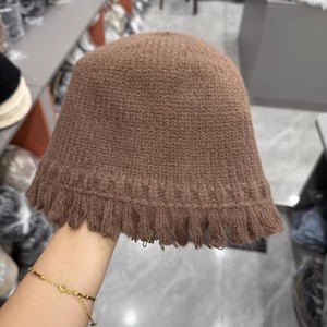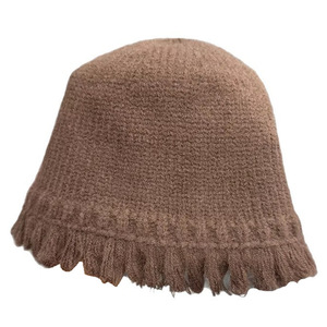 针织毛线花边渔夫帽-咖啡色