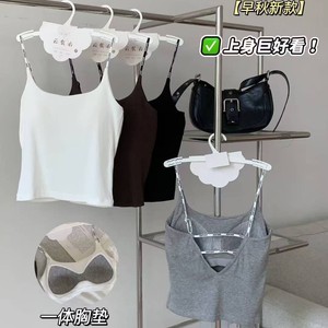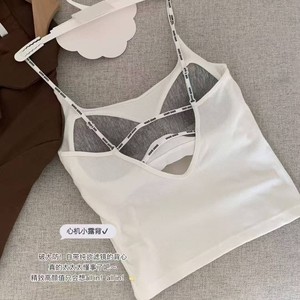 8311#个性字母肩带早秋时尚吊带背心 V型美背镂空固定杯内搭外穿