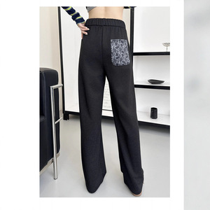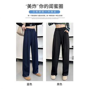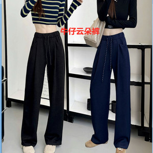 牛仔云朵高裤腰抽绳阔腿裤垂感休闲直筒裤慵懒百搭女外穿牛仔长裤