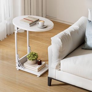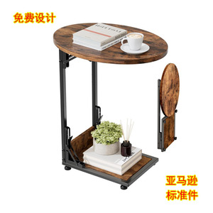 跨境圆形边几茶几小户型边桌极简带储物架客厅沙发复古北欧小圆桌