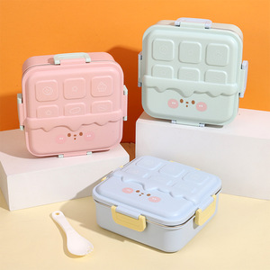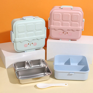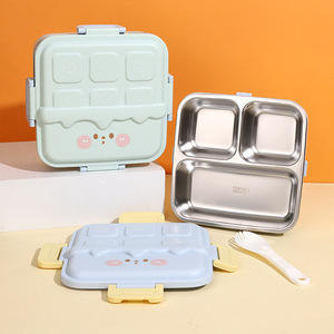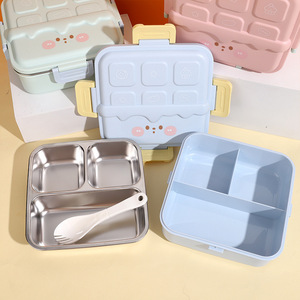 新款巧克力3格不锈钢饭盒带盖含勺便携可微波上班族餐盒便当盒