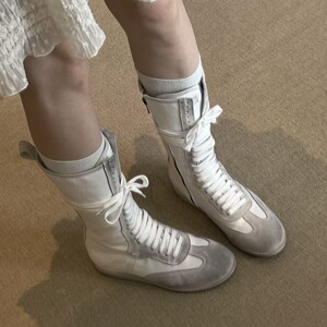 2025新款欧美风做旧圆头绑带马丁靴女平底舒适德训靴时髦休闲短靴