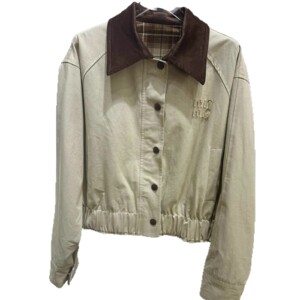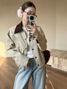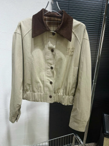 高版本【深圳南油】MIU系拼接灯芯绒领子内里格纹夹克外套早秋