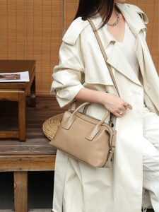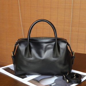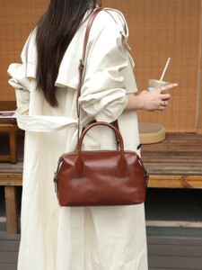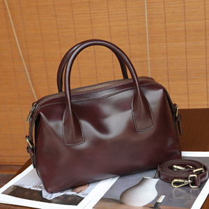 女包跨境秋冬新款波士顿包包女头层植鞣牛皮真皮复古手提斜挎女包