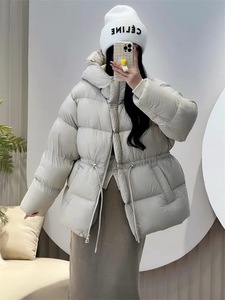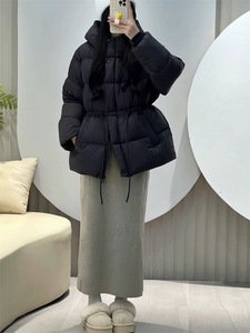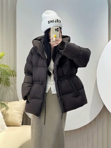 2025年秋冬季时尚新款保暖女连帽抽绳收腰显瘦小个子外套