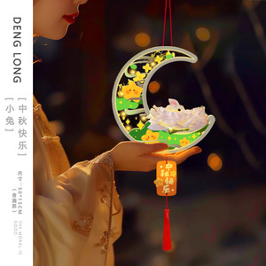 中秋灯笼手工月宫兔子花灯2025新款古风儿童户外手提挂饰宫灯