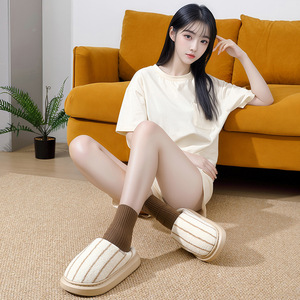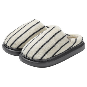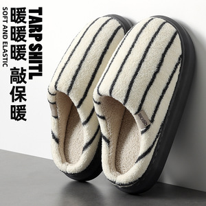 条纹家居棉拖鞋女秋冬季新款室内家用防滑保暖毛绒男士毛毛拖鞋男