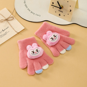 儿童针织手套水晶纱线冬季可爱卡通男女童保暖防寒五指分指拉布布