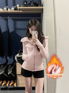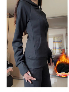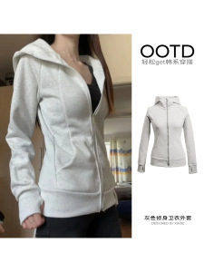 灰色修身卫衣外套女款早秋穿搭正肩收腰连帽上衣显瘦紧身收腰