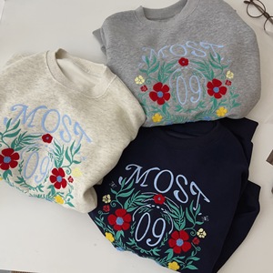 早秋植物刺绣韩系简约休闲百搭卫衣女宽松休闲百搭上衣女外套潮