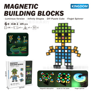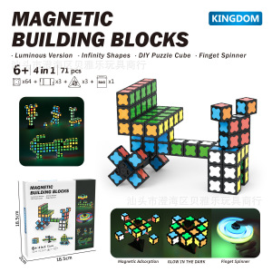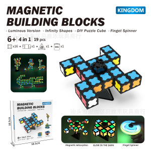跨境新款亚马逊发光磁力磁吸性积木方块自由DIY旋转陀螺儿童玩具