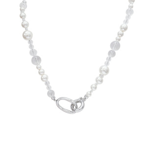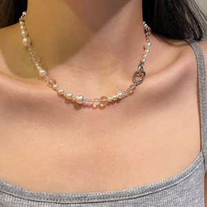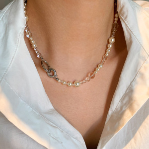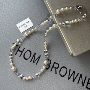 天然白色水晶S家珍珠项链女2025新款高级感轻奢叠戴百搭锁骨颈链