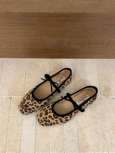 法式一字扣带方头玛丽珍女鞋2025秋季舒适柔软豹纹平底内增高单鞋