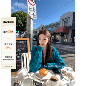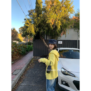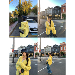 板栗可可'里斯本早秋'慵懒风毛衣开衫外套女连帽早秋麻花针织衣